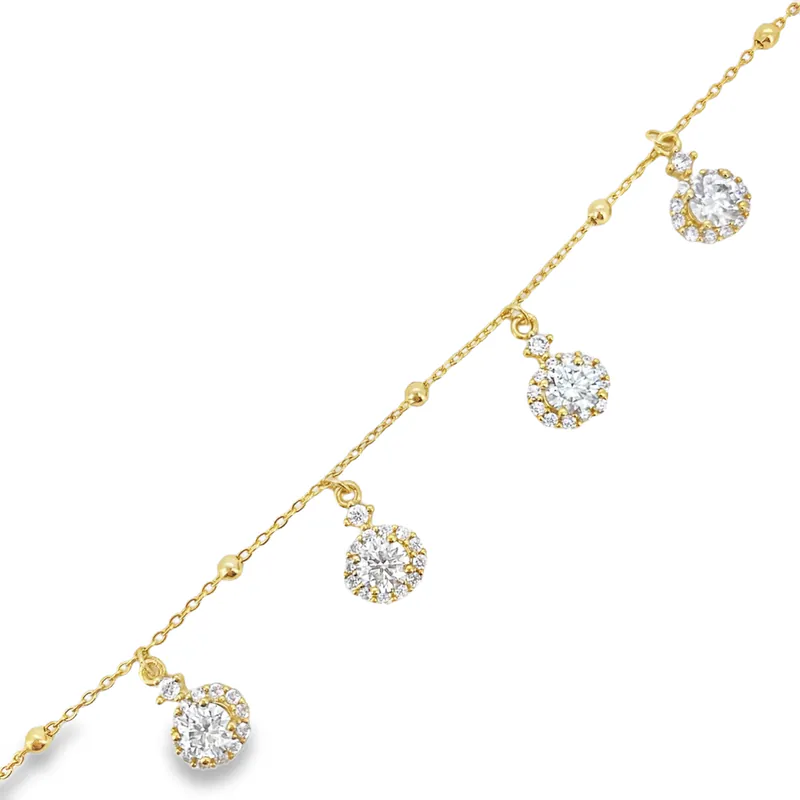 Grace your ankle with timeless sophistication through this Elegant Moissanite Dangle Anklet by TZGems. Meticulously crafted from premium 925 sterling silver, this anklet features four dazzling 5mm moissanite stones that shimmer with every movement.
