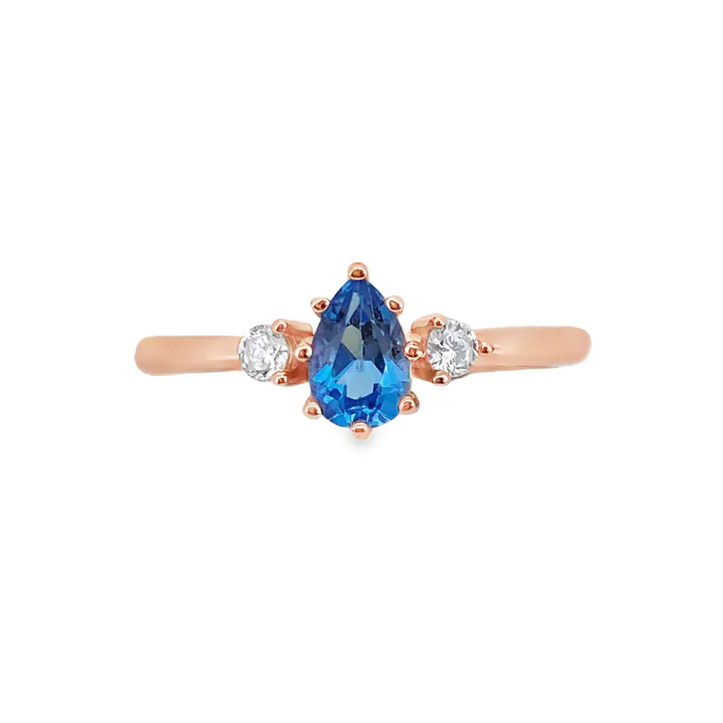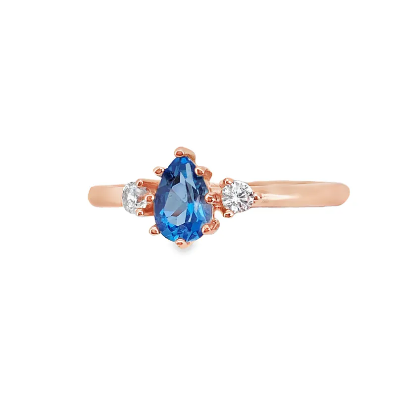 A pear-cut blue topaz ring set in rose gold-plated 925 silver. Minimalist, elegant, and customizable for gemstone color and size — perfect for daily wear or gifting.