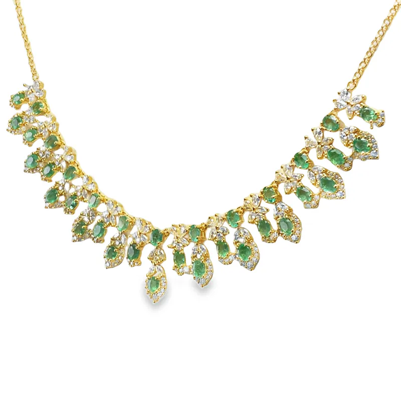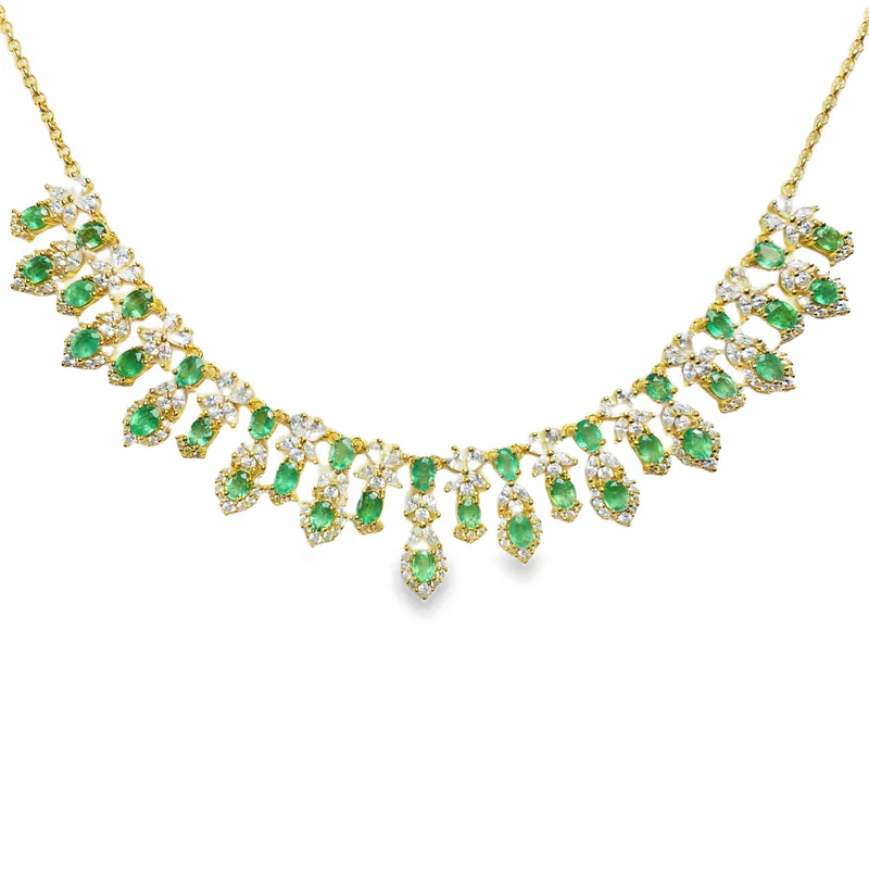 Elevate your style with the Emerald Luxury Cluster Necklace by TZGems, a masterpiece that radiates sophistication and artisanal craftsmanship. Featuring 34 sparkling emerald-cut stones set in premium 925 sterling silver, this statement necklace boasts a cascading cluster design that captures and reflects light beautifully.