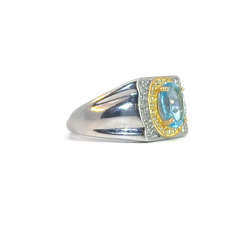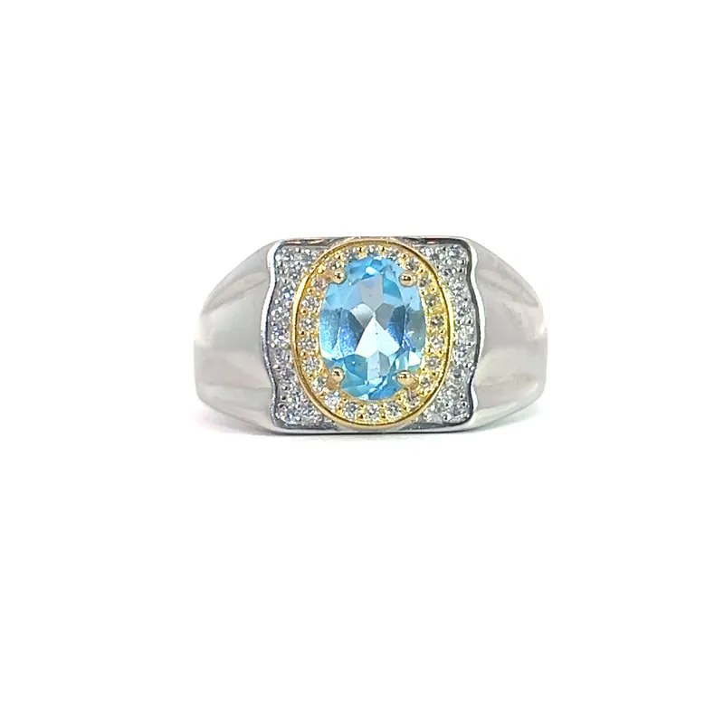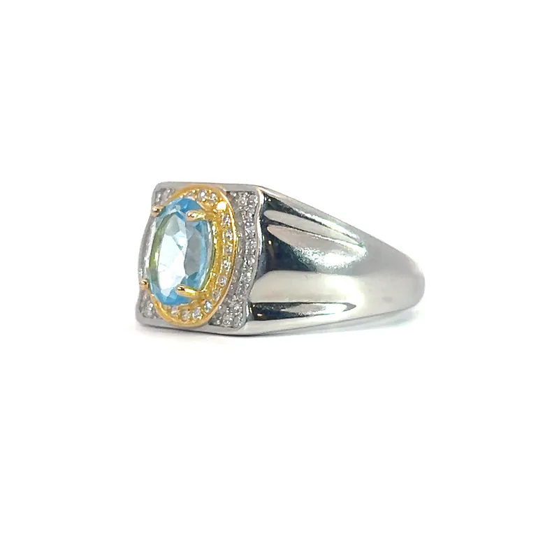 Showcase confidence and refined style with the Men’s Swiss Blue Topaz Ring, a luxurious piece crafted for strength and sophistication. Featuring a vivid Swiss Blue Topaz center stone surrounded by precision-set accent stones, this ring merges modern craftsmanship with timeless luxury.